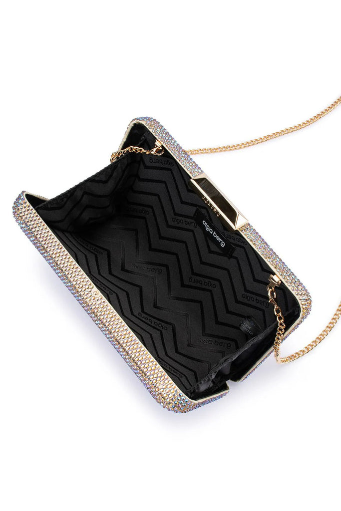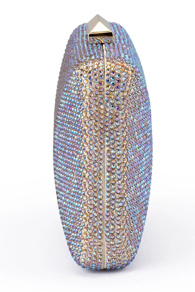 Our Olga Berg EDITH Iridescent clutch is sure to turn heads. A sparkly and unique bag that changes colour as you move. The iridescent rainbow effect crystals make it extremely versatile to style with a wide range of colours and outfits. It features ample room inside to holds a large smart phone and all your other event necessities.