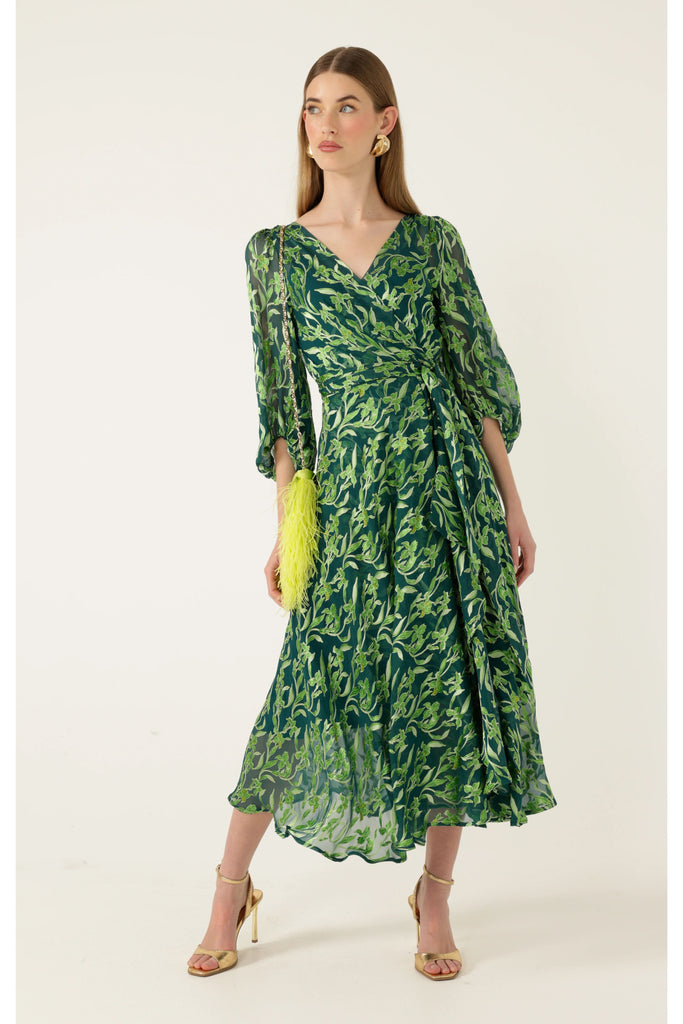 Orchid Wrap Dress - Emerald Botanical
