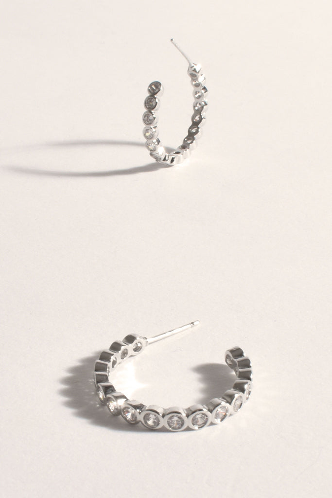 Cooper Rub Over Diamante Hoops - Silver Crystal