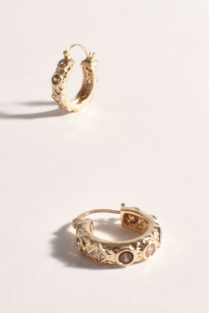We love the warm tones of the Geo Shapes Mini Hoops from Adorne.