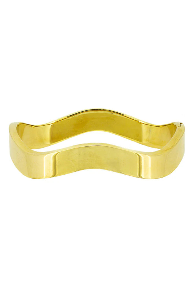 The Jean Bracelet features a symmetrical wave design, and a clip on clasp for easy wear.
